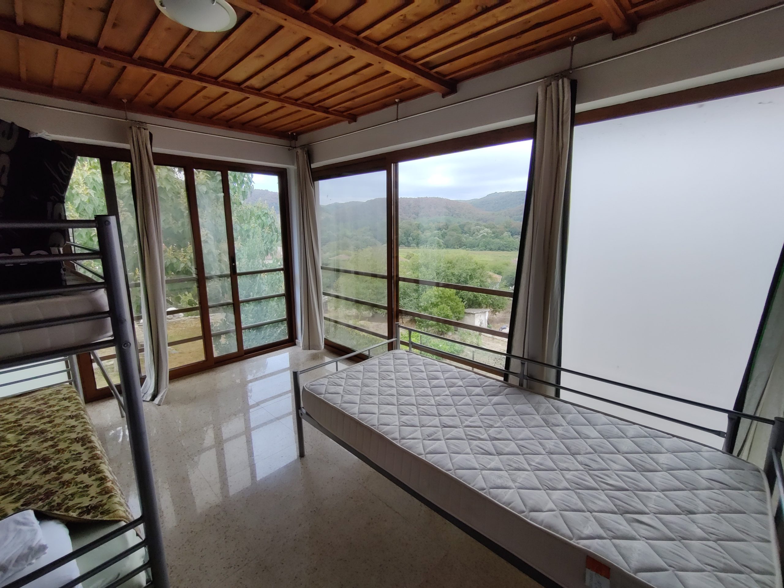 Родителска спалня с двойно легло и собствена баня, две спални с по две единични легла, и спалня – веранда с две единични легла.